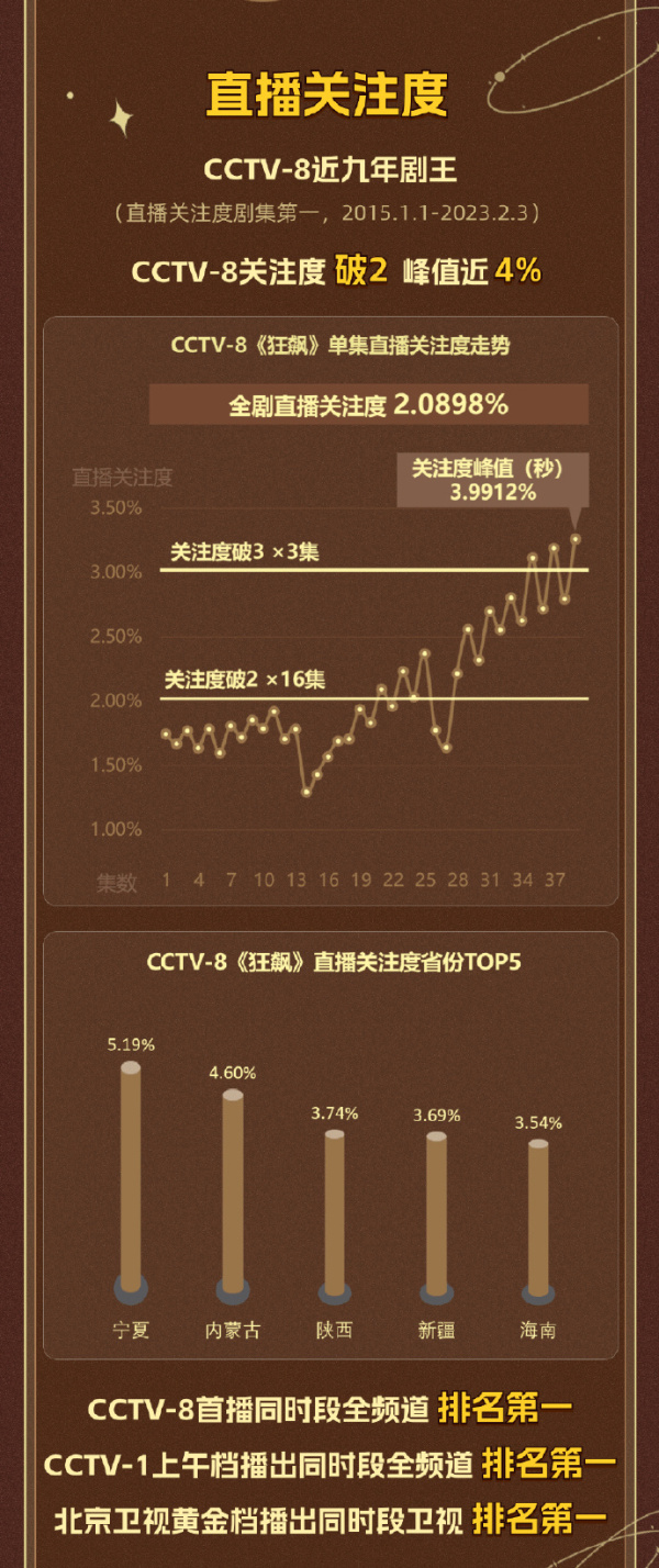 酷云直播关注度峰值达3.9912%,收官日平均关注度破3,全剧平均直播关注度2.0898%。