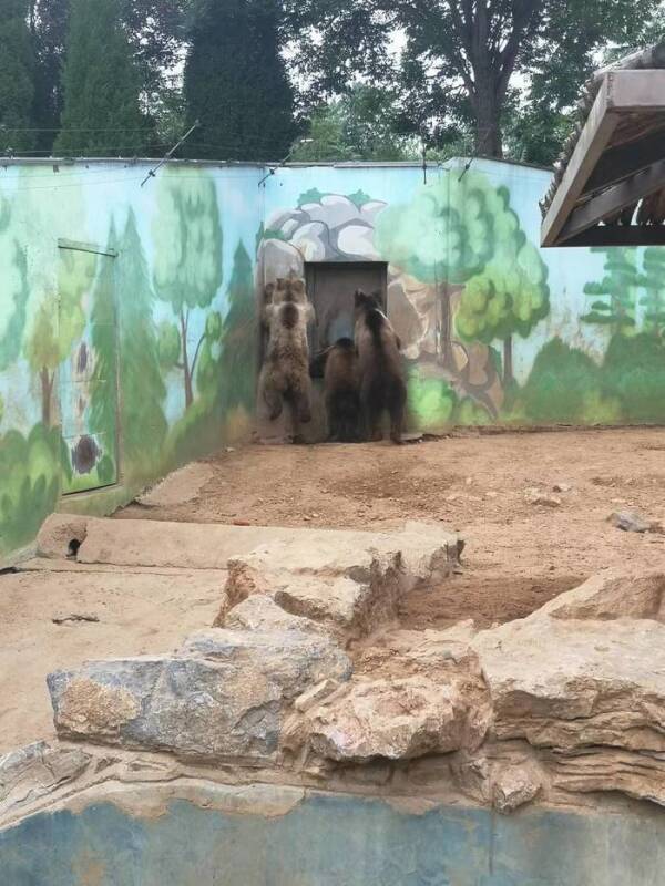 咣、咣、咣……使劲地砸门,着急地蹦高,这是咋了?6月28日下午4点50分左右,在济南野生动物世界,三只棕熊看到动物保育员往内笼舍的方向走,齐刷刷地跑过去,想要回家。“每天这个点,都是动物回笼的时候,稍微慢一些,它们就会着急地砸门、蹦高。”动物保育员说。