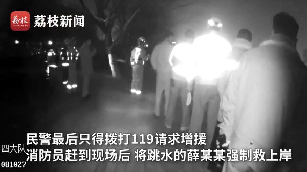 无奈之下,民警只好请求消防增援,消防员赶到后将男子强制营救上岸。