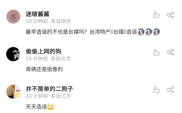这事情我觉得办得有些不体面,起码我心里听了不太舒服,而且我翻看评论区里,不少网友也发现了这点,说造谣的人是台媒。