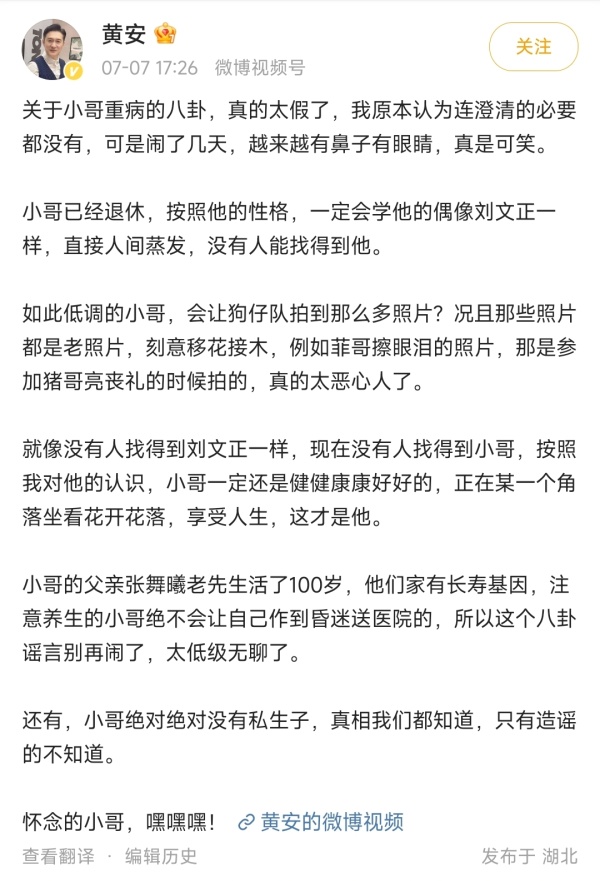当时我记得我也发布过相关的内容,帮着费玉清和黄安辟谣,这事情也算慢慢过去了。