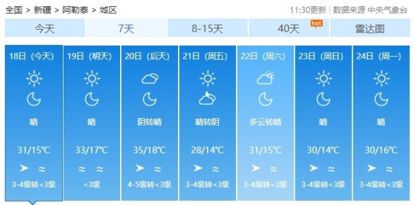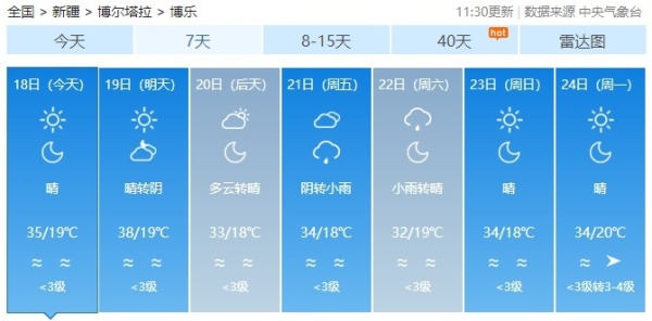 未来5天,全疆大部山区局地有降水,然而降水仍不能阻止高温的步伐。