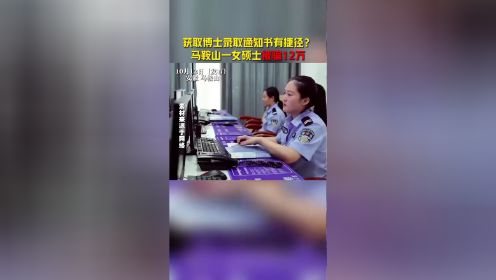 “我被人骗了。”日前,马鞍山市公安局雨山公安分局佳山派出所民警接到小珍报警,称其在网上被人以帮助办理博士升学为由骗走了12万元。