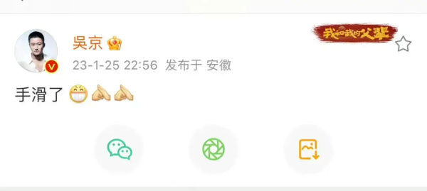 点赞那条动态后,吴京立刻发文解释是手滑了。解释完还不够,在参加《流浪地球2》路演时,吴京又解释了,他点赞是因为在老丈人家喝酒喝多了,对于这个称呼,他希望大家不要再拿来宣传,也不要提了。