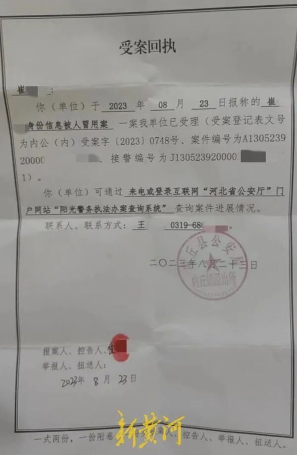 12月6日,新黄河记者向内丘县公安局了解案情进展,该局经办人王警官回应称,目前正在查找冒用崔女士身份证办理银行卡的使用者,案件正在调查中。此外,中国银保监会邢台监管分局一工作人员告诉新黄河记者,该机构已接到崔女士的投诉,已派出工作人员对该情况进行调查核实。