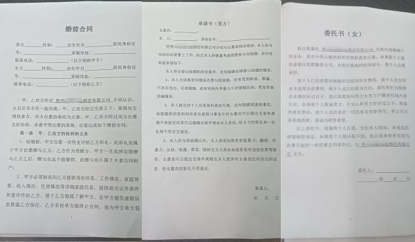 但实际上,婚介公司在操作过程中,要求双方签订的婚前合同、婚恋交友服务风险告知书等,尽管看似合法合规,但其实协议中已把各种可能出现的变故和风险,都抛给急于求成的男女双方及其父母。这些书面文件事前经过律师层层把关,最大限度规避了公司所面临的法律风险。