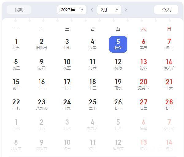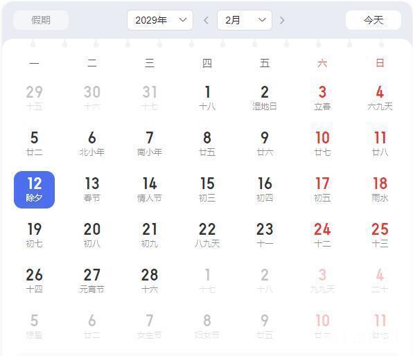 因为从2025年开始直到2029年,连续五年的除夕,都是“大年二十九”。这些日子分别是:2025年1月28日、2026年2月16日、2027年2月5日、2028年1月25日和2029年2月12日。