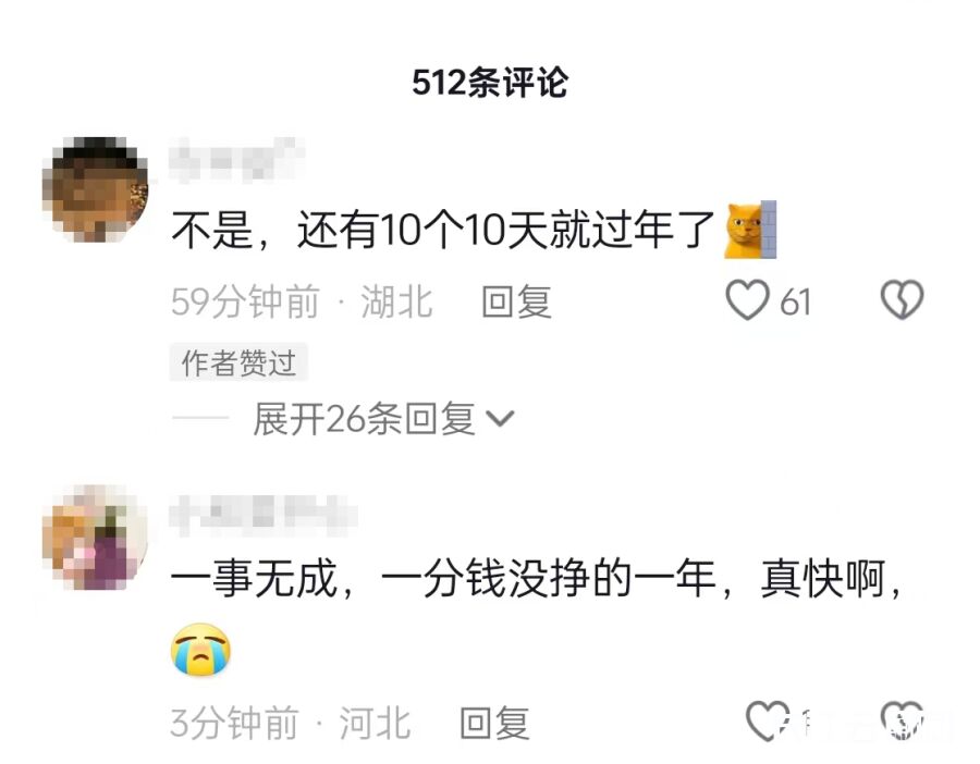 还有网友表示:“还有10个10天就要过年了”“今年还没存到钱呢就没了”。
