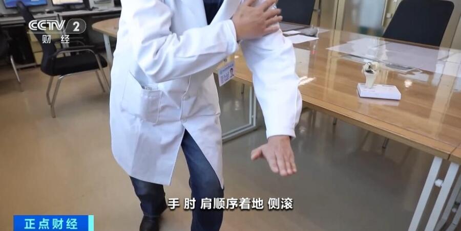 哈尔滨医科大学附属第二医院骨外科主任医师 谷守滨:一开始助跑速度不能太快,一般助跑两三步就可以。如果不可避免要摔倒的时候,不要奋力挣扎,要顺势摔倒,如果向后摔倒,一定不要让后脑着地,因为后脑是神经中枢所在的位置;如果向前摔倒,要降低重心,双手撑地,肘关节微屈,手、肘、肩顺序着地,用像守门员侧扑的姿势侧滚,缓冲力量,这样受到的伤害轻一些。