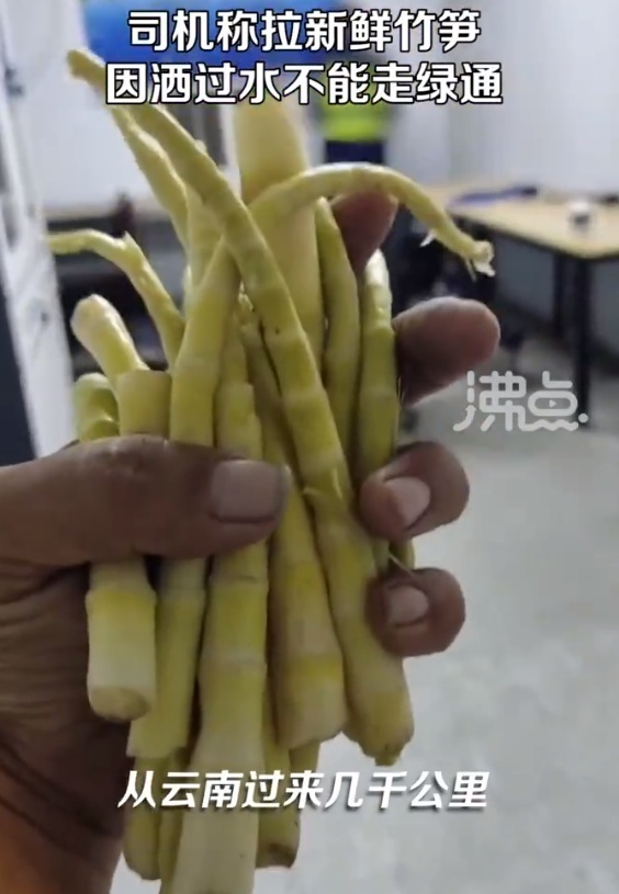 当事人称自己是从云南拉来的新鲜竹笋,跑了上千公里,上面一层难免有干的痕迹。沿途其他站点都没有收费,这里说竹笋是晒干的要收费很不合理。