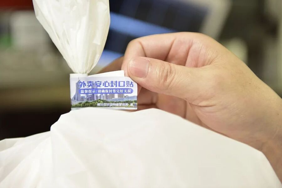 什么是食安封签呢?根据南京市市场监管局制定的《餐饮外卖一次性封签使用规范》,食安封签是指为保障外卖配送环节的食品安全,防止外送餐食外包装在运送过程中被人为拆启或意外破坏而采取的一次性封口包装件。