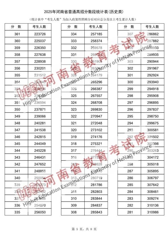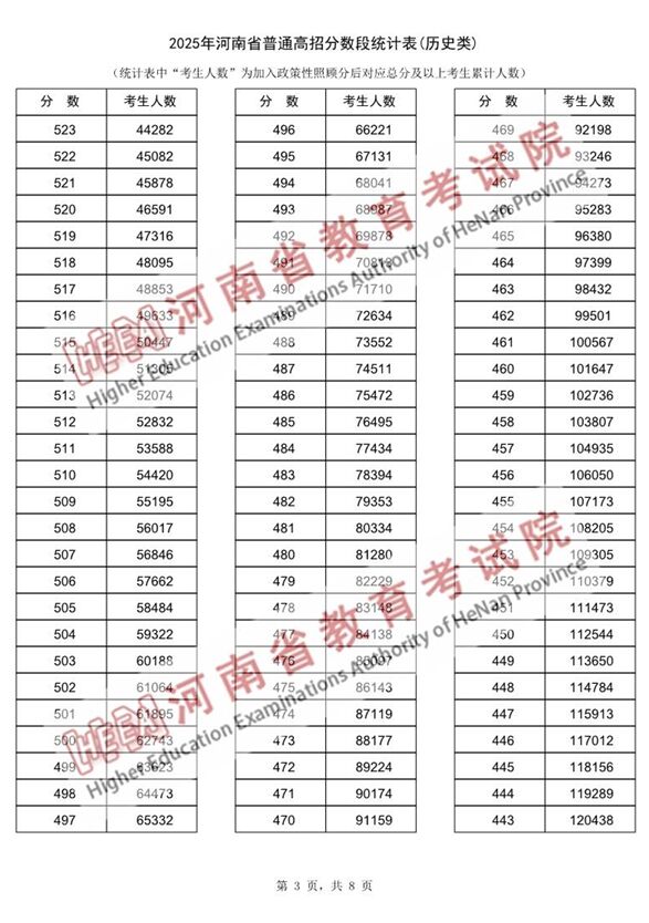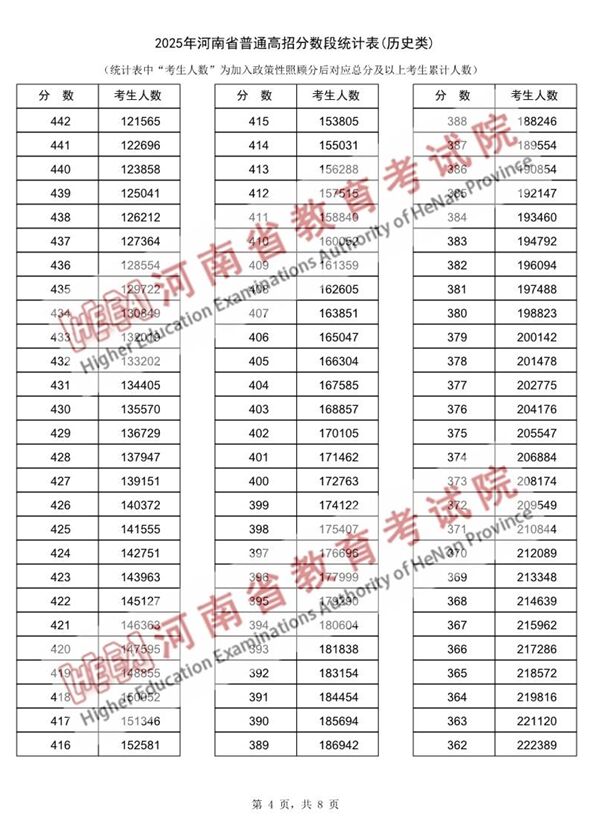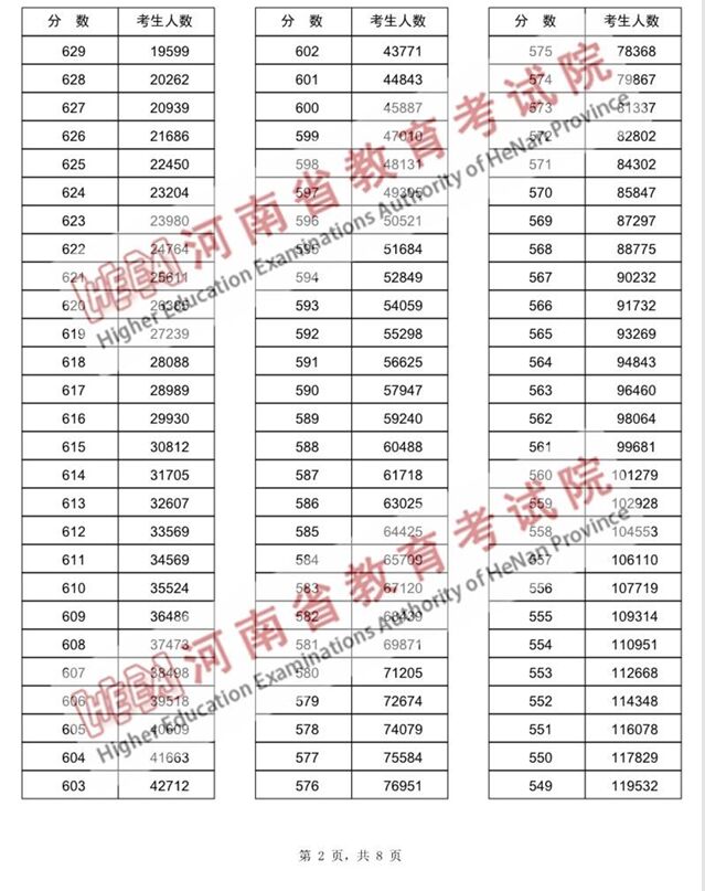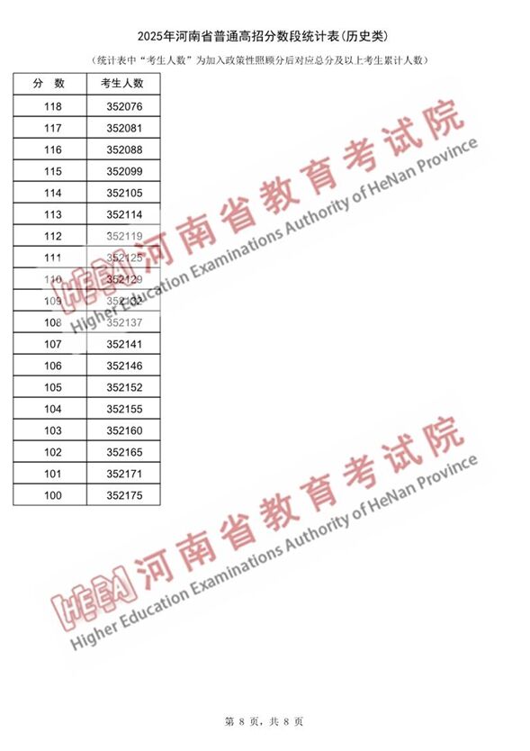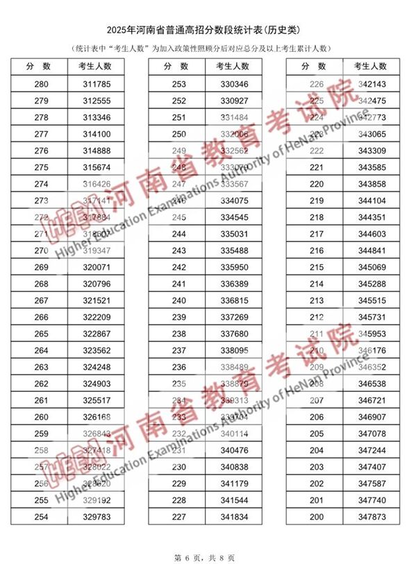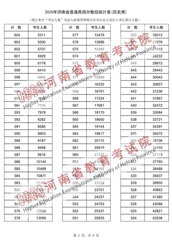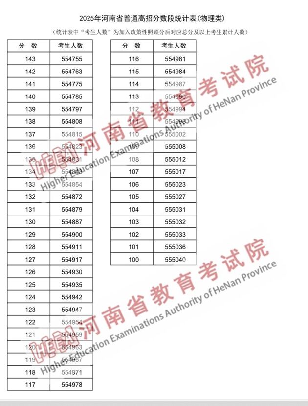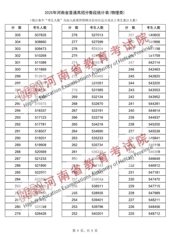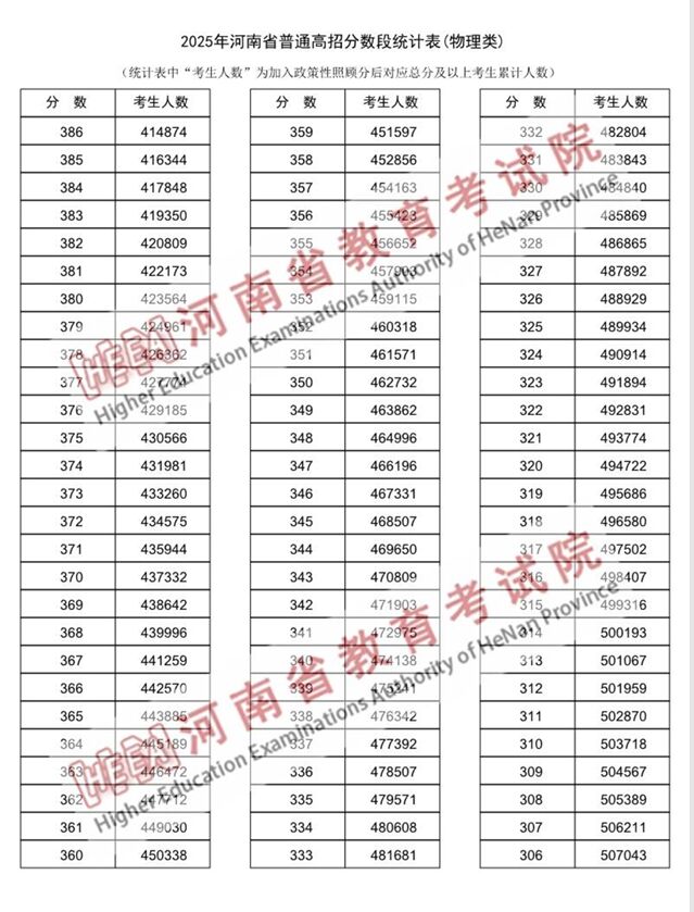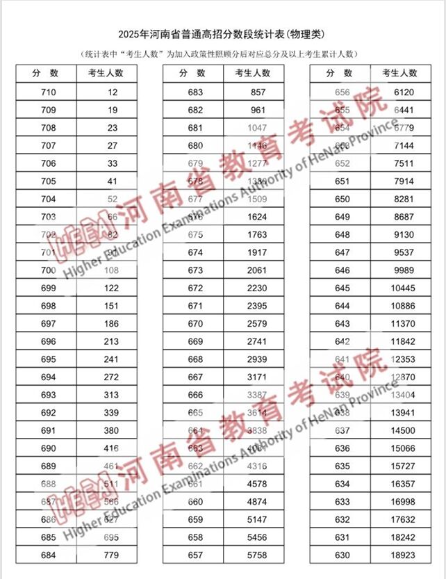 6月25日,河南省教育考试院公布了我省2025年高招“分数段统计表”(一分一段表)。
