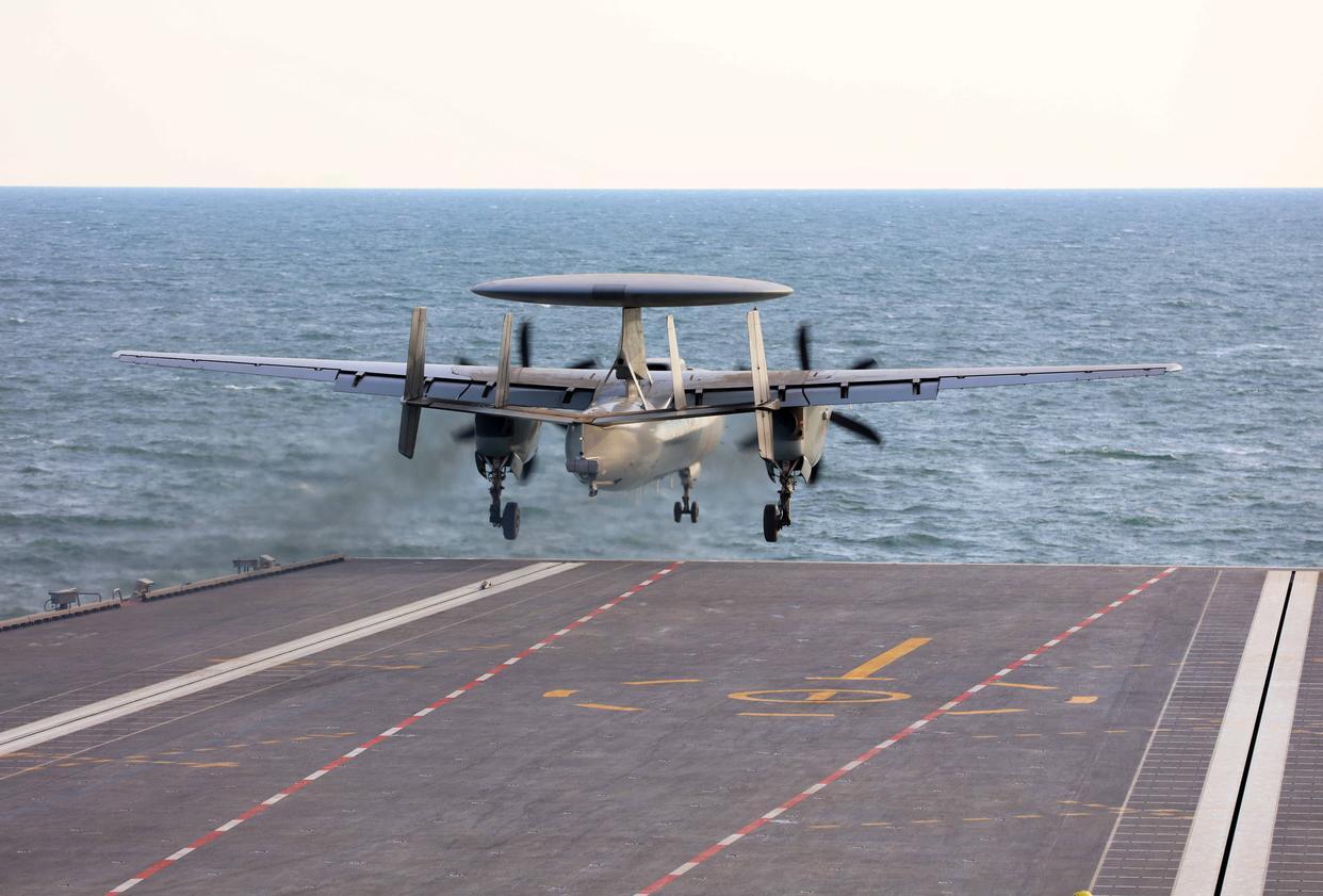 空警-600舰载预警机在海军福建舰电磁弹射起飞。这是战机离舰瞬间。李唐 摄