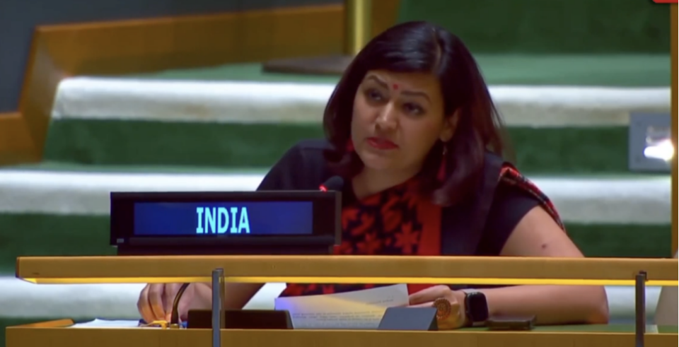 对于巴基斯坦总理的发言,印度方面作出回应。印方对谢里夫在联合国大会上的讲话进行了严厉驳斥,称其言论是“荒谬的戏剧性表演”,并声称无论多么戏剧化都无法掩盖事实。印度外交官佩塔尔·加洛特在行使答辩权时对巴基斯坦进行了反驳。