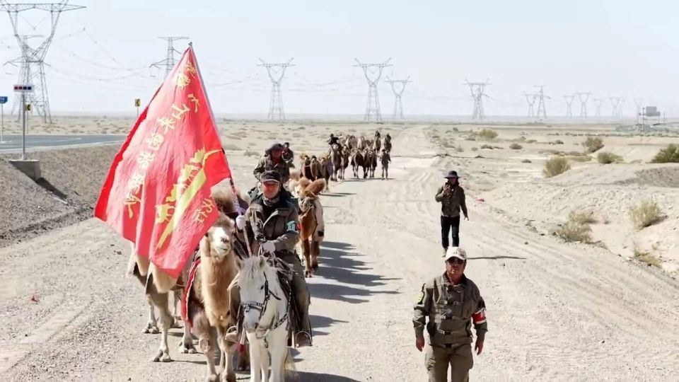 近日,甘肃张掖,一支骑着骆驼的旅行队走红。他们从新疆哈密出发,步行前往河南洛阳,已经走了60多天。