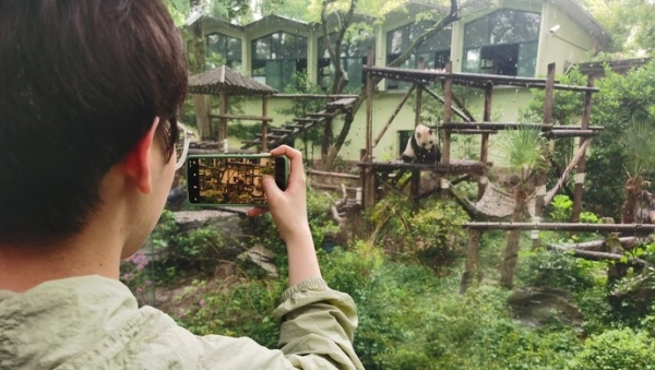 见到大熊猫“星光”“和风”两兄弟悠然啃着竹笋,四仰八叉躺在木架上的萌态,人们纷纷拿起相机、手机,发出被“治愈”的笑声和赞叹声。