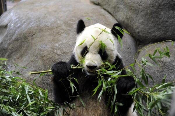 2010年8月13日,在孟菲斯动物园,12岁的“乐乐”在吃竹子 图片来源:新华社