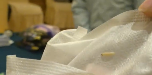 当着苏菲品牌方负责人的面,记者现场随机打开一包霍女士购买的且未拆封的苏菲安心裤,发现里面也出现了活虫。