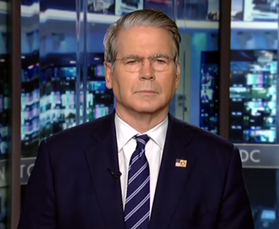 当地时间10月13日,贝森特接受美国福克斯商业频道采访。图为采访视频截图