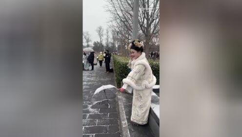 12日,游客在北京地坛公园赏雪拍照。经济日报记者赵晶摄
