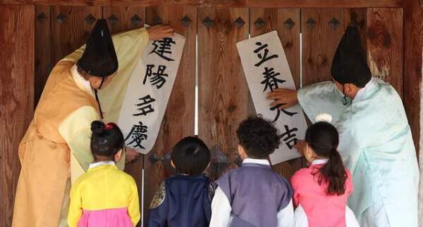 1日下午,在韩国庆尚南道咸阳郡的一家书院,院长李昌九向学生展示汉字春联“立春大吉,建阳多庆”;2日上午,大邱一家乡校的书法家计划用毛笔写多幅立春帖,并向市民免费发放。