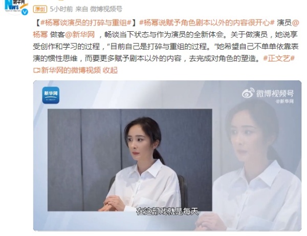今(22)日,杨幂做客新华网的采访释出,在采访中杨幂畅谈当下状态与作为演员的全新体会。