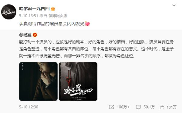 该剧官宣后却因演员名字的顺序,引发了网友热议。“杨幂二番”的词条冲上热搜。对此,杨幂发博回应了二番传闻,她表示:“能打动一个演员的,应该是好的剧本,好的角色,好的搭档,好的团队。演员首要任务是角色塑造,每个角色都有各自的席位,每个角色都有存在的意义。这个时代,是金子就一定不会被掩盖光芒,而那一排名字的顺序,都该为角色让位。”