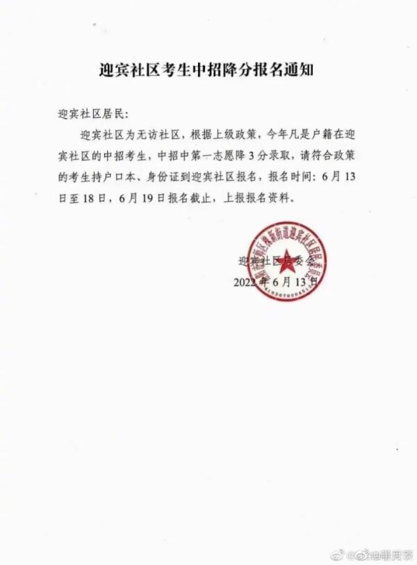 导读:6月13日,河南洛阳,一份名为“某某社区考生中招降分报名通知”的文件引发关注。官方回应,仅涉及区内学校。
