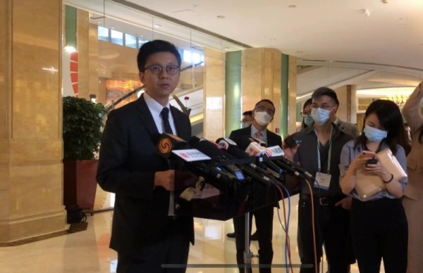 林绍波在“推动高质量发展·香港论坛”会场接受媒体采访。南都记者 翁安琪 摄