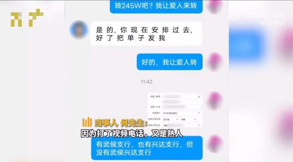 5月22日,安徽安庆的何先生接到熟人视频电话,让他帮忙转一笔账。但9秒之后,对方以“在开会”为由,迅速挂断了电话,还称“微信和电话不能说,加一下QQ”。