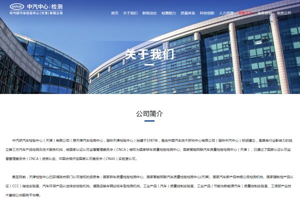 红星资本局了解到,中汽中心(天津)全称为中汽研汽车检验中心(天津)有限公司。该公司官网简介显示,中汽研汽车检验中心(天津)有限公司(简称“天津检验中心”)始建于1987年,是由中国汽车技术研究中心有限公司(简称“中汽中心”)投资建立,是具有行业影响力的独立第三方汽车产品检测及技术服务机构,被国家认证认可监督管理委员会(CNCA)授权为国家轿车质量检验检测中心、国家智能网联汽车质量检验检测中心(天津),已通过了国家认证认可监督管理委员会(CNCA)资质认定、中国合格评定国家认可委员会(CNAS)实验室认可。
