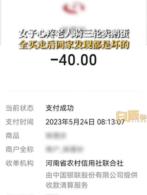 5月25日,据白鹿视频报道,5月24日,河南平顶山一女子称,她遇到一老太太骑三轮卖鹅蛋,出于心疼花40元买光了剩下的14枚鹅蛋,没想到回家发现鹅蛋全是坏的。