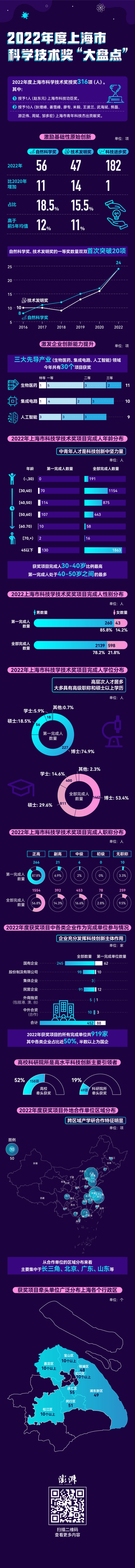 2022年度上海科技奖授予1人(赵东元)上海市科技功臣奖。授予10人(狄增峰、姜雪峰、廖专、米毅、王波兰、武海斌、熊磊、游正伟、周斌、邹多宏)上海市青年科技杰出贡献奖。授予56项成果上海市自然科学奖,其中,24个项目一等奖、30个项目二等奖、2个项目三等奖。授予47项成果上海市技术发明奖。其中,2个项目特等奖、22个项目一等奖、17个项目二等奖、6个项目三等奖。