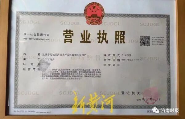 新黄河记者了解到,段女士所经营的窗帘店位于运城市运城经济技术开发区某临街商铺,面积90余平方米,店铺招牌为“博阳窗帘”。营业执照显示该店登记名称为“运城薛博阳窗帘店”。