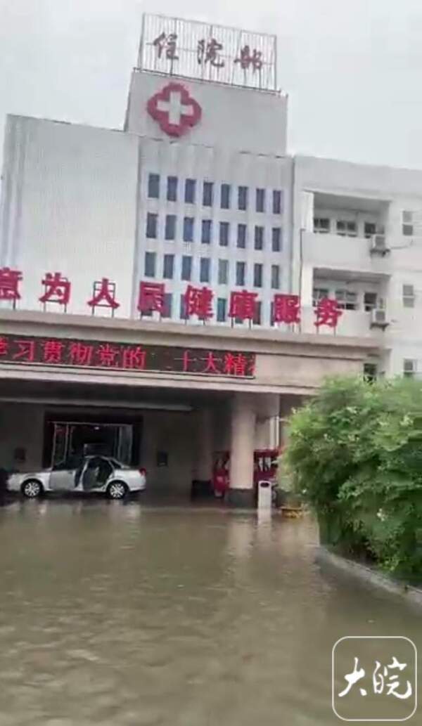 5月26日下午3点多,大皖新闻记者获得的四段现场视频显示,湖北江汉油田五七医院住院部1楼被水淹,住院部1楼病房、针灸室、治疗室内以及走廊都是积水,积水已没过脚踝,1楼住院病房内,有多名老人坐在轮椅上。此外视频还显示,医院住院部门口的积水更深。