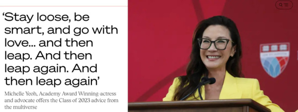杨紫琼在此前接受采访时表示,她的父亲是一名律师,这也使得这项邀请更具意义:“能够在哈佛法学院2023届学生的毕业典礼上演讲,我感到非常荣幸。”