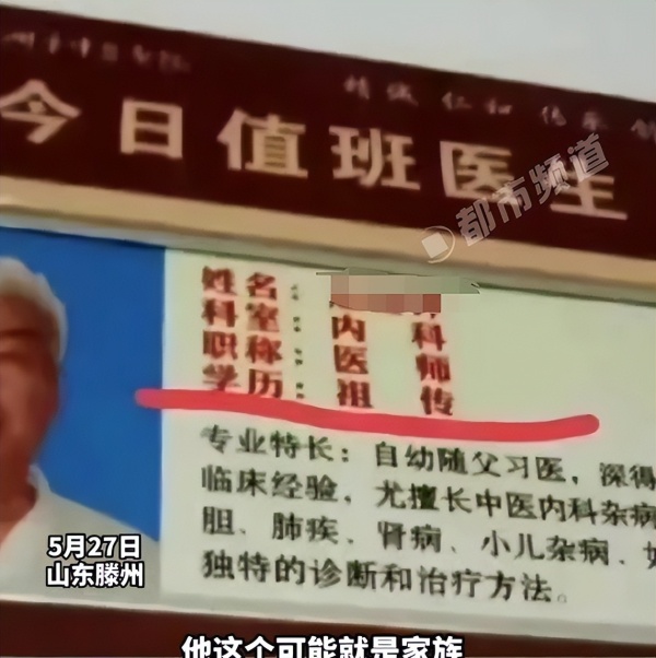 对此,滕州市中医医院回应公称,该医生的爸爸爷爷都是行医的,是国家承认。该工作人员表示:“他这个就是他家族,他爸爸、爷爷存在的祖传的情况,这块国家是承认这个祖传的。”