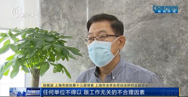 上海市政协第十三届常委、上海市法学会劳动法研究会副会长 陆敬波 :平等的就业权是我们国家《劳动法》、《就业促进法》规定的基本权利 , 任何单位不得以跟工作无关的不合理因素歧视劳动者,让他减少工作机会、减少晋升机会,否则就是一种违法行为