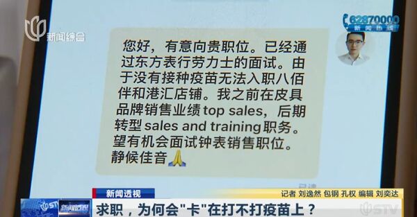通过了2轮面试后,正在等待入职的他,却收到了人力资源的通知,不接种新冠疫苗,不能入职。