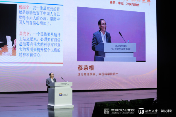 香港中文大学荣誉院士、中国文化书院导师陈方正博士担任主讲人,以《杨振宁和他的世界——锋芒、幸运、冲突与融合》为题,讲述杨振宁百余年传奇人生故事。理论物理学家、中国科学院院士蔡荣根,量子物理学家、中国科学院院士潘建伟展开评议,通过多维视角呈现了一名享誉世界的物理大师的风貌。