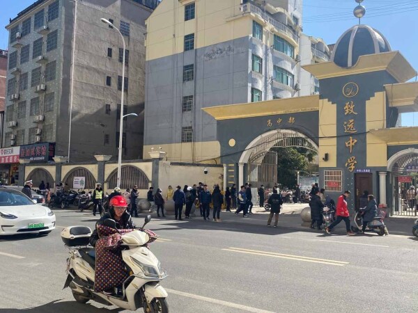 2023年1月30日,江西铅山,致远中学校门口。(南方周末记者 汪徐秋林/图)