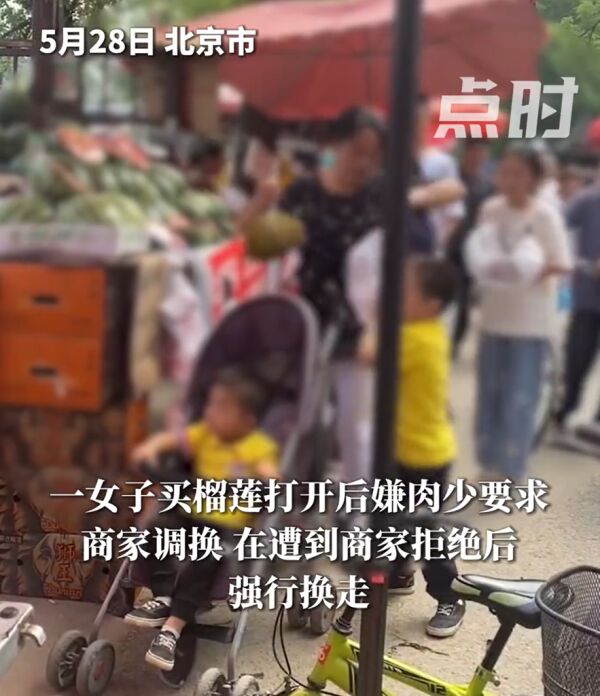 据点时新闻报道,5月28日,北京一女子强行调换榴莲,孩子在旁边哭喊劝阻,引起广泛关注。
