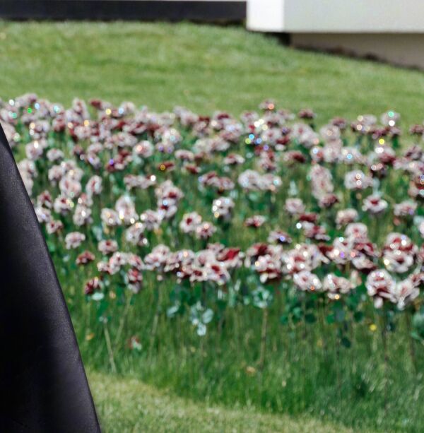 草坪上的水晶玫瑰也是经过艺术家精心创作设计,属于美术展品的一部分,不少网友和网红们都前去打卡过,也发了不少图。