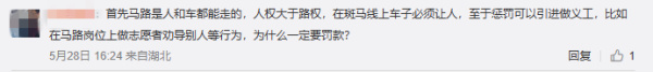 也有网友表示:只要是走斑马线过马路 ,就不应该处罚
