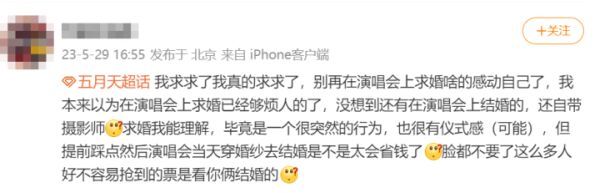 很多网友表示不理解,并希望自己看演唱会不要遇到求婚现场: