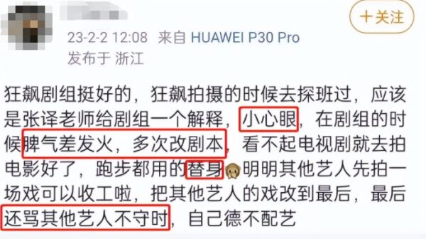 有许多八卦媒体在社交平台上爆料称,张译与《狂飙》剧组不和,因为其在该剧开播前,没有过多的在自己的社交账号上宣传,而且在该剧播完后,直接将自己唯一的宣传动态删除,疑似与剧组闹变扭,而且还有很多人都信了,更是大肆报道这件事情,导致张译和《狂飙》剧组造成不好的影响。
