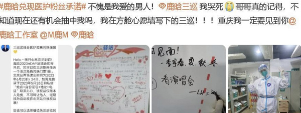 多位医护人员在鹿晗工作室收到了巡演邀请,鹿晗兑现了三年前对医务爱好者的承诺,并邀请他们来看演唱会,温暖感动。