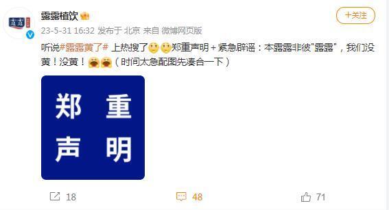 不过这会令人产生歧义,有网友表示:“我以为我从小喝到大的露露杏仁露倒闭了”,“以为是露露杏仁露黄了”。 对此,承德露露发布声明称:本露露非彼“露露”,我们没黄!没黄!