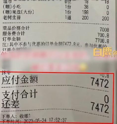 5月31日,据白鹿视频报道,近日,广东深圳一女子去朋友开的饭店捧场,对方却提前帮她点了7472元的菜,引起广泛关注。
