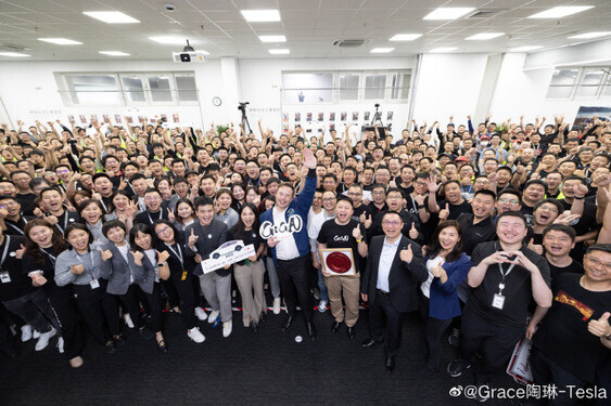 特斯拉全球副总裁陶琳微博发布两张马斯克和员工的大合影,配文“感谢所有的支持! 收获满满的一天! ”,地点就是特斯拉上海超级工厂。陶琳在朋友圈也发布了马斯克和员工的大合影,并配文:“激动人心的一天! 永葆赤子之心,儿童节快乐。”